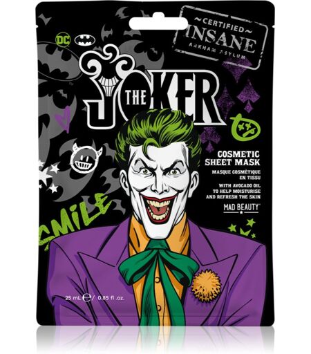 Mad Beauty Joker Sheet Mask, 1 pc, Sheet masks for Women, Does it feel as though your skin isn’t quite right and needs something more than just the care provided by a cream? The Mad Beauty Joker Sheet Mask face mask is the perfect product to enrich your skincare routine – it pampers the skin and delivers an intensive treatment, bringing about an instant improvement in the skin’s appearance. Characteristics: hydrates deeply and nourishes intensively beautifies the appearance of skin in general brightens and freshens strengthens the skin barrier regenerates the skin How to use: Apply the mask in a thin layer to a cleansed face, avoiding the eye area. Leave to act for the time indicated on the packaging. ...
