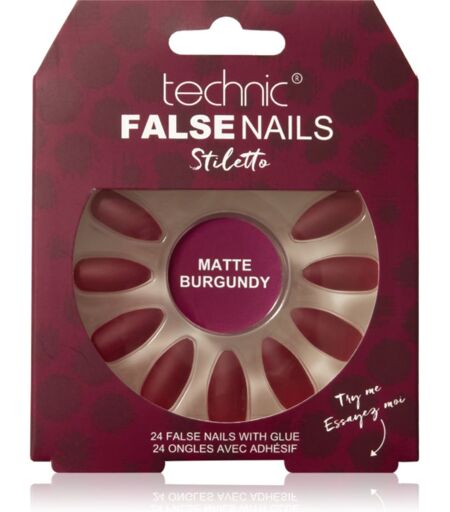 Technic Cosmetics False Nails Stiletto False Nails Matte Burgundy 24 pc