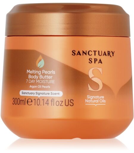 Sanctuary Spa Signature Natural Oils, 300 ml, Body Butters for Women, Do you have the feeling that your skin needs more intense care than body lotions and creams can provide? Sanctuary Spa Signature Natural Oils body butter is the right choice for you. As opposed to standard creams and body lotions, it contains less water and has a thicker consistency that makes it a more nourishing and more concentrated body care option. It deeply hydrates and intensely nourishes skin, leaving it nice and soft to the touch. This body butter also pampers skin with its creamy texture, ensuring a long-lasting effect. All you need to do is apply it to your skin after a shower or bath, and suddenly, everyday hygiene will become an extraordinary experience. Characteristics: has a pleasant fragrance nourishes and softens intensively easy to apply, easily absorbed restores skin firmness Ingredients: vegan product contains a minimum of 92% ingredients of natural origin How to use: Massage into clean skin whenever it is dry and in need of nourishment and hydration. Massage until the product is fully absorbed. ...