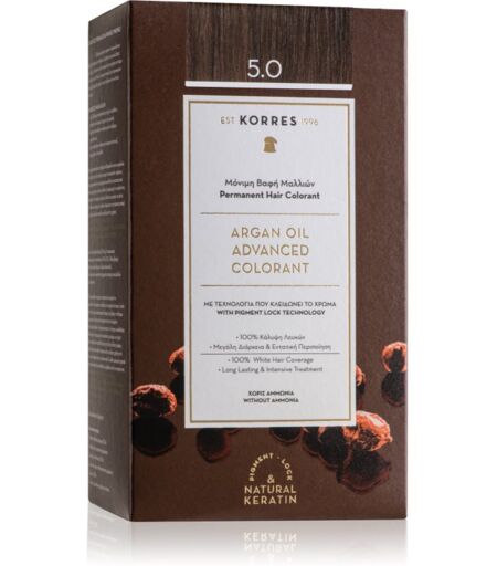 Korres Argan Oil Permanent Hair Dye with argan oil shade 5.0 Light Brown 50 ml