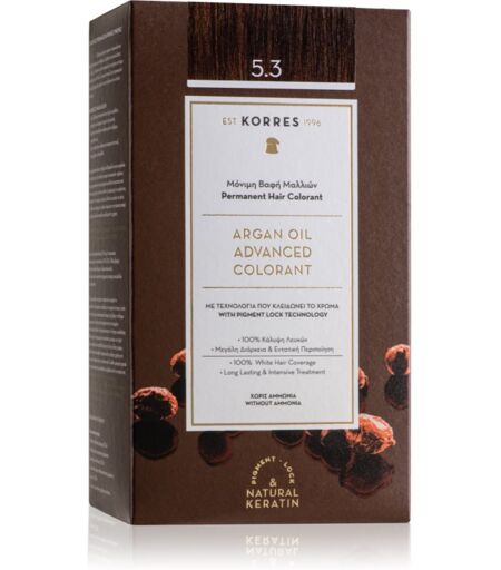 Korres Argan Oil Permanent Hair Dye with argan oil shade 5.3 Golden / Honey Light Brown 50 ml