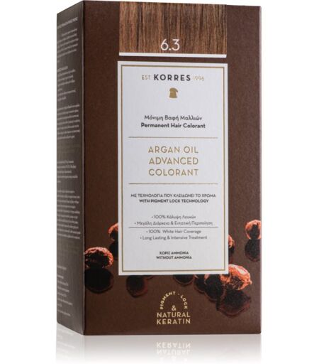 Korres Argan Oil Permanent Hair Dye with argan oil shade 6.3 Golden / Honey Dark Blonde 50 ml