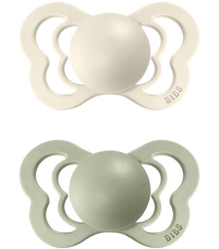 BIBS Couture Natural Rubber Size 1: 0+ months dummy Ivory / Sage 2 pc