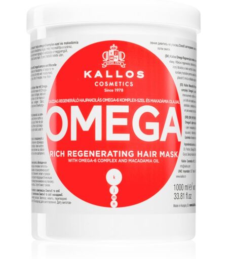Kallos KJMN Professional Omega, 1000 ml, Hair Masks for Women, Do you feel that your hair needs more intensive care than conditioners or balsams can provide? A hair mask from KallosKJMN ProfessionalOmega will perfectly enrich your hair care routine. Thanks to its high concentration of nourishing ingredients aimed at tackling specific problems, it restores vitality and beauty to your hair. It penetrates deep into the hair fibres to strengthen them, nourish them intensively, promote their regeneration and smooth their surface, leaving them beautifully soft to the touch, radiantly shiny, but also more resilient to damage. Characteristics: moisturises intensely regenerates the hair along its entire length gives hair a brilliant shine hair is soft to the touch restores hair structure Ingredients: macadamia oil - rich in unsaturated fatty acids, nourishes both scalp and hair, strengthens and helps to keep them hydrated, smooths, anti-frizzing, softens and helps to further condition hair How to use: Leave to act as instructed on the packaging, then rinse thoroughly. ...