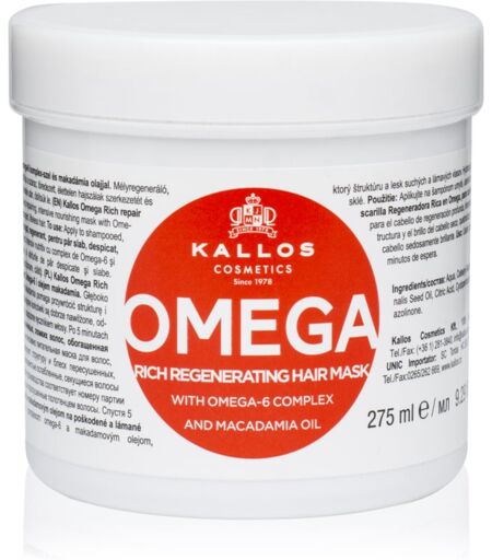Kallos KJMN Professional Omega, 275 ml, Hair Masks for Women, Do you feel that your hair needs more intensive care than conditioners or balsams can provide? A hair mask from KallosKJMN ProfessionalOmega will perfectly enrich your hair care routine. Thanks to its high concentration of nourishing ingredients aimed at tackling specific problems, it restores vitality and beauty to your hair. It penetrates deep into the hair fibres to strengthen them, nourish them intensively, promote their regeneration and smooth their surface, leaving them beautifully soft to the touch, radiantly shiny, but also more resilient to damage. Characteristics: moisturises intensely regenerates the hair along its entire length gives hair a brilliant shine hair is soft to the touch restores hair structure Ingredients: macadamia oil - rich in unsaturated fatty acids, nourishes both scalp and hair, strengthens and helps to keep them hydrated, smooths, anti-frizzing, softens and helps to further condition hair How to use: Leave to act as instructed on the packaging, then rinse thoroughly. ...