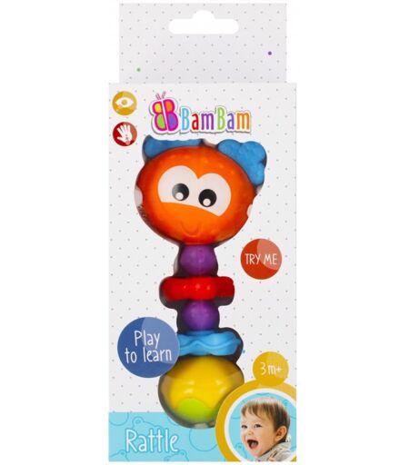 Bam-Bam Rattle, 1 pc, Interactive toys For Kids, Bam-Bam Rattle rattle will keep your baby occupied while developing their skills. Your little ones will be captivated by its material, colours and interesting sounds, while the parents will appreciate the safe design. Characteristics: varying textures stimulate a child’s sense of touch colours stimulate sensory development stimulates the senses of sight and touch draws baby’s attention can be easily held by a tiny hand ideal as a first toy for the youngest babies contrasting colours spark the baby’s interest and develop their eyesight ...
