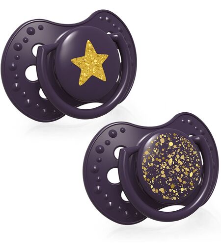 LOVI Stardust Violet, 2 pc, Dummies and pacifiers For Kids, Trust this tried-and-tested way to calm your baby down. The LOVI Stardust Violet dummy will make your baby feel safe within a few moments, and will soon become an essential and highly practical part of your everyday life with your new baby. Characteristics: developed in collaboration with paediatricians and tooth experts promotes the correct growth of teeth and gums adapts to the shape of your baby’s palate soft teat dermatologically tested Ingredients: silicone ...
