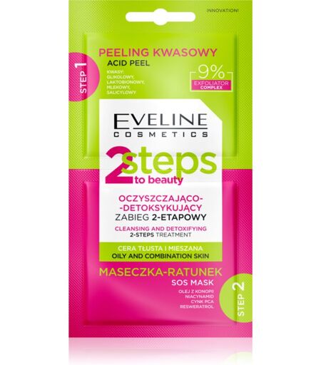 Eveline Cosmetics 2 Steps To Beauty, 2x4 ml, Facial exfoliators for Women, For effective exfoliation to avoid skin imperfections, you don’t have to go to a beauty salon. The Eveline Cosmetics 2 Steps To Beauty facial scrub takes care of it in the comfort of your home. Not only does it remove dead skin cells that tend to clog pores or cause blackheads or a dull skin tone and greyness, it also rids the skin of impurities and generally smooths it. Characteristics: removes dead skin cells hydrates deeply and nourishes intensively reduces skin blemishes regenerates skin effectively cleans pores effectively How to use: Apply to a wet face, massage gently, then rinse carefully with water. Apply the mask in a thin layer to a cleansed face, avoiding the eye area. Leave to act for the time indicated on the packaging. ...