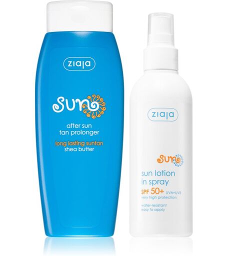 Ziaja Sun, , After-Sun Care for Women, Everything for beautiful skin in one set. The Ziaja Sun cosmetic set will be great as a treat for yourself or a gift for your loved ones. The set contains: Sunscreen Lotion in Spray SPF 50+ 170 ml Ziaja Sun Soothing Milk to extend tan length 200 ml Characteristics: a set at a favourable price protects against sunlight soothes the skin perfectly extends your tanned look How to use: Apply the product around 20 minutes before exposing skin to the sun. Repeat as necessary, particularly after bathing, if perspiring, or after towel drying. Do not stay in the sun for too long, even if you have used sun protection products. After spending time out in the sun, massage into clean skin using circular movements. ...