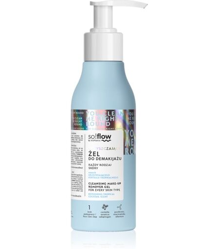 so!flow Cleansing Make-Up Removal Gel, 150 ml, Makeup Removers for Women, Makeup removal is an essential skincare step that should never be skipped. The so!flowCleansingMake-Up Removal Gel makeup remover effectively removes all traces of foundation from your face, leaving your skin soft, perfectly clean and ready for the next treatment. Characteristics: removes makeup effectively dissolves even waterproof makeup perfectly leaves skin completely clean soothes irritation hydrates the skin prevents skin from drying out suitable for sensitive skin cleans pores effectively Ingredients: vegan product niacinamide – promotes skin brightening, reduction of pigment spots, colour evenness and smoothing of rough texture, helps to strengthen the protective skin barrier and thus improve the level of skin hydration allantoin – soothes, hydrates and softens, promotes regeneration How to use: Apply to damp skin and massage gently. Then rinse off. ...