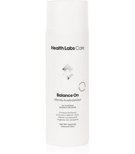 Health Labs Care Balance On Conditioner, 200 ml, Hair Conditioners unisex, During hair washing, shampoo opens the external hair structure - the cuticle. That's why it's important to give your hair a treatment after washing to reseal the cuticle. And that's exactly what the conditioner from Health Labs CareBalance OnConditioner takes care of. In addition to closing the hair fibre, it ensures its nourishment, hydration and softness, without which beautiful, shiny and healthy hair cannot do without. It will protect the hair from mechanical damage and dryness, as well as smooth the surface and help soften it, which will make it easier to detangle and further styling. Characteristics: smooths and acts against frizz makes untangling and styling easier provides the necessary hydration How to use: Apply to washed hair along the lengths and to the ends. Depending on your hair length, use the appropriate amount. Leave on for the indicated number of minutes:2-3. Then rinse thoroughly with water. Brush through. ...