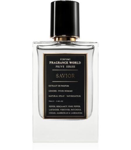 Fragrance World Prive Series Savior, 80 ml, Eaux de Parfum for Men, New day – new opportunity to tackle more challenges. Fragrance World Prive Series Savior Eau de Parfum for men will refresh your mind so that you can boldly follow your instinct. Embrace your everyday adventures! chypre fragrance citrus fragrance aromatic fragrance with herbal notes ...