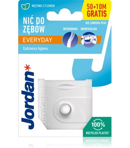 Jordan Dental Floss Everyday, 60 m, Dental floss unisex, The Jordan Dental Floss Everyday dental floss is an important accessory when it comes to interdental care. It helps in the fight against bacteria in places that a toothbrush does not reach. Characteristics: removes plaque from under the gum line guaranteed to be gentle on the gums removes food remnants slides easily between your teeth has a waxed surface How to use: Use after regular cleaning of the teeth to clean the interdental spaces or after food to remove food stuck between the teeth. ...