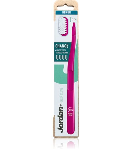 Jordan Change Green Clean Medium 4 head, 1 pc, Toothbrush unisex, The Jordan Change Green Clean Medium 4 head toothbrush keeps your teeth healthy and beautiful. It removes plaque effectively and helps prevent tooth decay. Characteristics: cleans teeth very gently removes plaque polishes the surface of your teeth easy to handle provides gentle care for your gums and tooth enamel medium soft bristles How to use: Put toothpaste on the brush, moisten and clean the teeth and mouth. Rinse thoroughly. ...