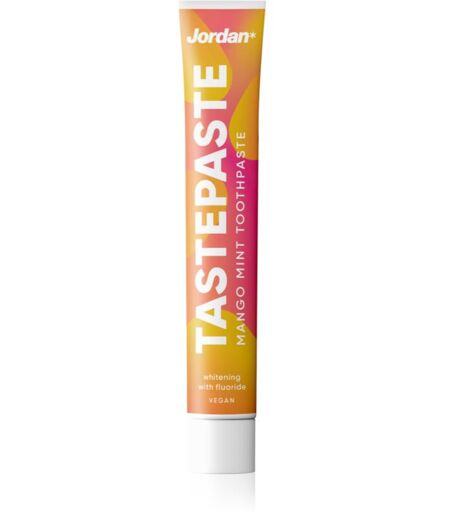 Jordan Tastepaste Mango Mint, 50 ml, Complete protection unisex, The Jordan Tastepaste Mango Mint toothpaste ensures complete care for your teeth and gums. It cleans teeth of plaque and food remnants while caring for the gums and mucous membranes in your mouth. Characteristics: cleans teeth freshens breath whitens teeth protects against tooth decay works against tartar guaranteed to be gentle on tooth enamel Ingredients: vegan product How to use: Apply an appropriate amount of toothpaste to the brush and clean the teeth for at least two minutes. Rinse your mouth thoroughly. ...