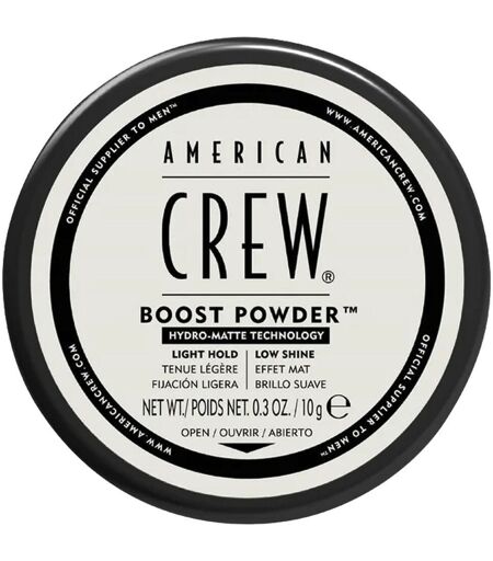 American Crew Boost Powder gives your hair volume, density and a matt finish. The practical jar means you always have the perfect styling at hand. The lightweight volumizing powder gives your hair plenty of volume and grip with a medium hold and also gives it a dramatic texture that defies gravity. The formula contains propylene glycol, which maintains natural moisture and softens hair, silica silylate, which provides flexible hold and adds volume, and citric acid, which revitalizes hair and acts as an astringent. American Crew Boost Powder can be combined with any other American Crew styling product. Application: Sprinkle powder evenly on dry hair and roots, knead in briefly and style, use more product for more fullness. ...