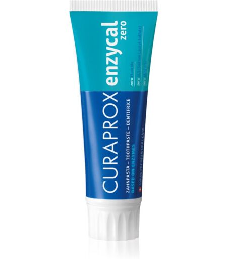 Curaprox Enzycal Zero, 75 ml, Toothpastes unisex, Curaprox Enzycal Zero toothpaste contains no fluoride and strengthens teeth naturally. It is especially suitable for sensitive teeth and gums. Characteristics: cleans teeth reliably ensures the prevention of plaque, tartar and tooth decay freshens breath takes care of gums Ingredients: does not contain a foaming agent does not contain fluoride How to use: Use at least twice a day. Clean the teeth thoroughly for at least two minutes. For further treatment of the teeth, use dental floss or an interdental brush. ...