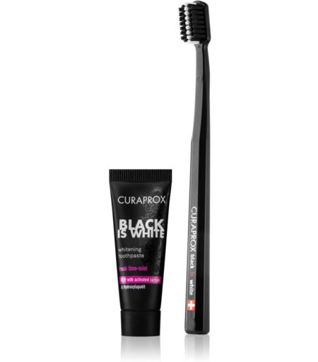 Curaprox Black is White, 2 pc, Whitenning toothpaste unisex, Healthy, sparkling white teeth are always beautiful. Curaprox Black is White cosmetic set offers all the necessary products for gorgeous teeth and a brilliant smile. The set contains: 5460 Ultra Soft Toothbrush 1 pc Fresh Lime-Mint Whitening Toothpaste with Activated Charcoal and Hydroxiapatite 8 ml Characteristics: guaranteed to be gentle on tooth enamel fights tooth decay and plaque helps stop tooth decay mineralises enamel freshens breath How to use: Use at least twice a day. Clean the teeth thoroughly for at least two minutes. ...