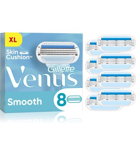 Gillette Venus Smooth, 8 pc, Replacement blades for Women, Not getting the same precision results with your shaver as before? It’s time to change the blade. The Gillette Venus Smooth replacement blades ensure the same smooth shave as with a new shaver. Characteristics: easily interchangeable shaving heads blades ensure a smooth shave shaving gel is not needed – just wet it adjusts flexibly to every curve How to use: Replace the shaving head with a new one as soon as the moisture strip wears out. ...