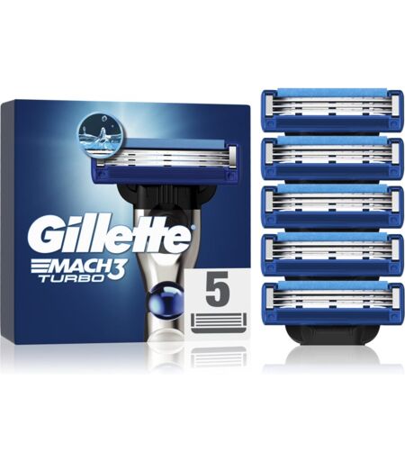 Gillette Mach3 Turbo, 5 pc, Replacement blades for Men, Not getting the same precision results with your shaver as before? It’s time to change the blade. The Gillette Mach3 Turbo replacement blades ensure the same smooth shave as with a new shaver. Characteristics: easily interchangeable shaving heads blades ensure a smooth shave integrated moisture strips release caring substances does not irritate the skin How to use: Replace the shaving head with a new one as soon as it wears out or the blades go blunt. ...
