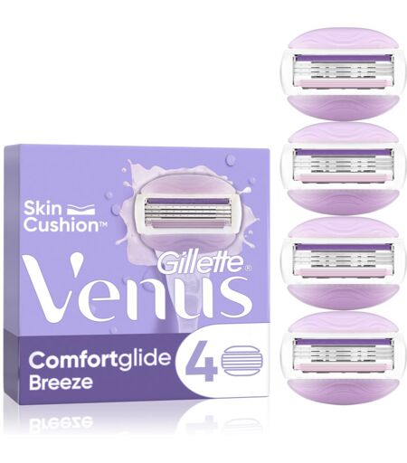 Gillette Venus ComfortGlide Breeze, 4 pc, Replacement blades for Women, Not getting the same precision results with your shaver as before? It’s time to change the blade. The Gillette Venus ComfortGlide Breeze replacement blades ensure the same smooth shave as with a new shaver. Characteristics: easily interchangeable shaving heads blades ensure a smooth shave shaving gel is not needed – just wet it integrated moisture strips release caring substances How to use: Use to shave. Wet the shaver to create a light foam. Replace the shaving head with a new one as soon as it wears out or the blades go blunt. ...