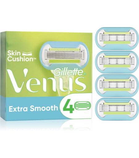 Gillette Venus Extra Smooth, 4 pc, Replacement blades for Women, Not getting the same precision results with your shaver as before? It’s time to change the blade. The Gillette Venus Extra Smooth replacement blades ensure the same smooth shave as with a new shaver. Characteristics: easily interchangeable shaving heads blades ensure a smooth shave integrated moisture strips release caring substances adjusts flexibly to every curve How to use: Use to shave. Use together with a shaving product. Replace the shaving head with a new one as soon as it wears out or the blades go blunt. ...