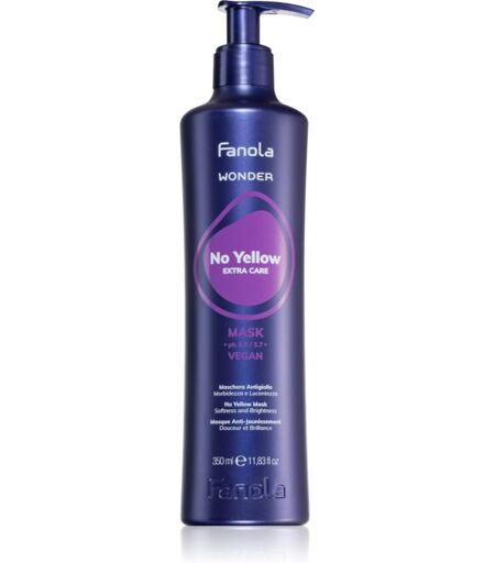 Fanola Wonder No Yellow Extra Care Mask, 350 ml, Hair Masks for Women, The Fanola Wonder hair mask is an essential step in your hair care ritual. Give it a moment to regenerate and it will repay you with vitality and beauty. Characteristics: neutralises yellow undertones in your hair hair is soft to the touch moisturises intensely gives hair a brilliant shine How to use: Wash with shampoo, then apply to damp hair. Leave to act as instructed on the packaging, then rinse thoroughly. ...