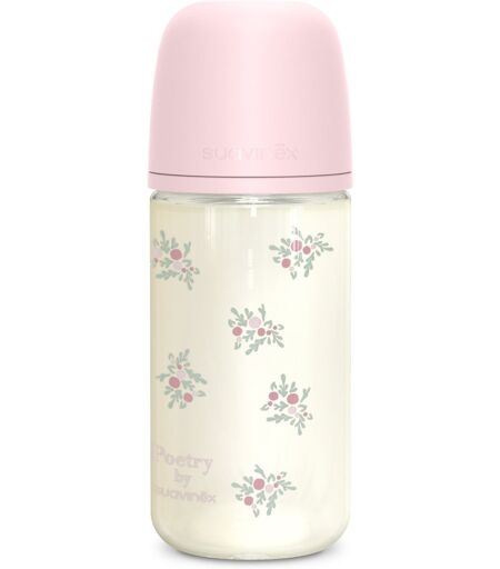 Suavinex Poetry SX Pro Physiological Glass M glass baby bottle 3 m+ Medium Flow - Pink 240 ml