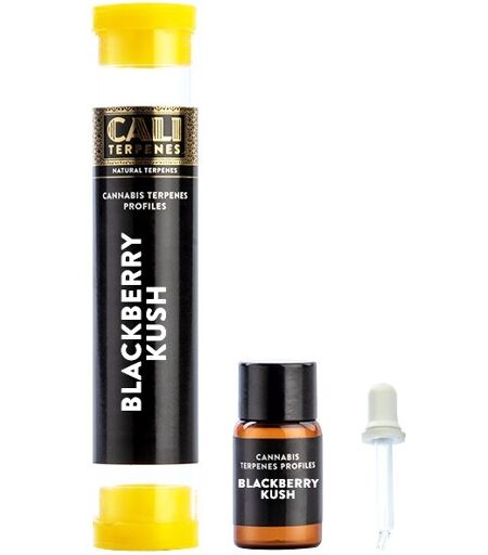 The Blackberry Kush (Afghani x Blueberry) terpene profile from Cali Terpenes is primarily used to impart the special aroma and flavor of cannabis and to enhance the beneficial properties of all types of products such as: Liquid bases for vaping (for making e-liquids). Cannabis extracts and concentrates (rosin, dry, BHO, distillates...) Hemp or cannabis flowers Food and beverages Cosmetics and aromatherapy This product does not contain cannabinoids. 0 % THC, CBD etc. 100% flavour in liquid format. Terpenes are 100% organic. Made from the highest quality raw materials, originally from crops without transgenic substances (GMO) and without pesticides and pollutants. Cali Terpenes Blackberry Kush has a penetrating aroma and flavor that is similar to Afghan hash with sweet, erathy notes similar to Kush, with hints of berries and fruit. The terpene profile of Blackberry Kush cannabis works together with other elements such as cannabinoids in a so-called additive effect. Therefore, in products such as flowers, extracts or tinctures that contain cannabinoids, terpenes can often contribute to the effect they produce. Main terpenes: Caryophyllene, Myrcene, Limonene, Pinene, Linalool, Menthol, Nerolidol, Cineol Volume: 1 ml Recommendations for the use of Cali terpenes: These terpenes are 100% pure, so they should be handled with care and should never be consumed without mixing them with the intended product (except in cold tastings where the terpenes are used in their pure state). When diluted in the desired product and in the correct proportions, terpenes are 100% safe and provide flavor and other benefits. 1ml of terpenes = 40 drops (0.025 ml per 1 ml dropper), so 1 drop of terpenes represents approximately 0.25 % of a 10 ml liquid base: 1 drop in 10 ml = 0.25 %.2 drops in 10 ml = 0.50 %.4 drops in 10 ml = 1 %.8 drops in 10 ml = 2 %.12 drops in 10 ml = 3 %. It is recommended to test the quantity from the lowest, as our terpenes have an easily intense aroma and taste when used. Liquid bases for vaping (for making e-liquids) The recommended and most commonly used amount of terpenes to ensure sufficient flavour in e-liquid bases is between 1 and 3 % terpenes (you can use up to 4, but 2 % is most common). For example, if you wanted to add 2 % terpenes to 10 ml of e-liquid base, you would just use 0.2 ml of terpenes and for 100 ml of e-liquid base and 2 % terpenes, you should add 2 ml. Cannabis extracts and concentrates The recommended and most common amount of terpenes used to impart sufficient flavour and aroma to dry extracts (dry hash or traditional hash), jelly, BHO (wax, shatter, live resin...), rosin or THC and CBD distillates is between 1 and 3 % terpenes (you can use a maximum of 4 %, although 2-3 % is the norm). For example, to add 3 % terpenes to 10 g of a cannabis concentrate like clear, a type of distillate, you only need 0.3 ml of terpenes. It is strongly recommended to test the amounts used and start with small amounts - for example, use 1... ...