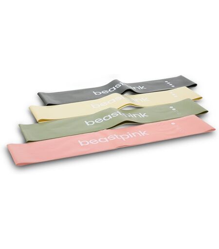 BeastPink Resistance Set, 4 pc, Fitness Equipment for Women, Don't like spending time in crowded gyms or fitness centres? An exercise aid BeastPinkResistance Set will improve and streamline your home workout. Characteristics: ideal for home training easily fits into a sports bag The set contains: Pink 2,3–4,5 kg Resistance Band 1 pc Olivine 4,5–6,8 kg Resistance Band 1 pc Ivory 6,8–9,0 kg Resistance Band 1 pc Shadow 9,0–13,6 kg Resistance Band 1 pc Ingredients: stretch material ...