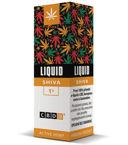 LIQUID CBDex SHIVAcontains cannabidiol (CBD) cannabis extract which is not narcotic, non-addictive and is obtained in the Czech Republic entirely in accordance with applicable legislation.The aerosol produced is not harmful to health, with carrier natural substances such as propanediol and glycerine metabolised in the body into natural metabolites that are excluded from the body without stress. The inhaled aerosol was tested at VSCHT Prague and no harmful substances were found (more information about the test at www.cbdex.cz).Use and dosing:Use in approproate electronic inhalation devices as recommended by the relevant manufacturer. The recommended daily dose is 0.5 ml (26 drops). Do not exceed the recommended daily dose.Ingredients: Propanediol, Glycerin, Cannabidiol (100 mg/10 ml), Caramel, Cannabis Sativa essential oil.. Propanediol vs. glycerol in a ratio of 9 :1Smoke level: medium Attention: This is a natural product. It is not suitable for consumers under 18 years old. Be advised that you should not use the product before or during driving a vehicle or operating heavy machinery. The product does not contain THC, NICOTINE or other intoxicative substances. Tolerance: Mainly during the first dosing, sensitive individuals can experience a distinct feeling of release. Shake well before use. Change of colour may occur and does not affect quality. Store well sealed, in the dark and temperatures under 25°C. See the packaging for the best before date. This product is suitable for aroma diffuser. Producer: CANNABIS Pharma, s.r.o. Masarykova 1595/54, 41501 Teplice, CZ www.cbdex.cz ...