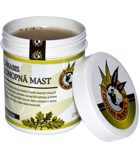 Hemp ointment with oak bark is suitable for massage of tired legs in the presence of varicose veins. Ointment with hemp extract hydrates the skin and is suitable for skin care after mild sun irritation. Ointment with oak cure extract is suitable for skin care in the area of hemorrhoids. Cannabis helps soothe irritated skin, which helps with allergic reactions or atopic eczema, psoriasis or acne. In massage emulsions or gels, it relaxes stiff joints, muscles, cramps and consequently reduces pain in diseased parts of the body. In cosmetic products from the area of decorative cosmetics, where it helps to slow down the processes of skin aging, the skin moisturizes, softens and also reduces wrinkles. Gives shine in shampoos and other hair care products. In nail care, it helps nails to add hardness. For example, it is part of a regenerating face cream for men or face masks for women. Use: Apply ointment to the affected area at least twice a day and gently massage into the skin.Storage: Store at 15-25C. Ingredients:Petrolatum, Cannabis Sativa Stem / Extract, Quercus Robur Bark Extract ...