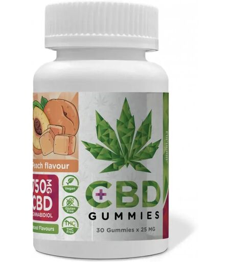 One of the most convenient - and fun - forms of cannabidiol (CBD) is through CBD gummies. They're portable, discreet, and tasty, making them a good choice for people who want to try CBD for the first time. Suitable for vegans, no animal gelatins, gluten-free! - Vegan- Gluten-free- THC-free Total CBD content 750 mg Flavor: Peach Products have undergone extensive laboratory analysis to ensure the absence of synthetic cannabinoids. We prioritize quality and safety in products to provide you with the best experience possible. NOTE: DO NOT DRIVE OR OPERATE MACHINERY WHILE USING THIS PRODUCT. Do not use if you are pregnant, nursing, or have any diagnosed or undiagnosed medical conditions. Ensure that the purchase or use of this product complies with all applicable laws and regulations in your jurisdiction. Warning: Do not expose to direct sunlight. Store in a dry place. This product complies with all applicable laws and regulations. It is intended solely for industrial, technical, and horticultural purposes. Not intended for direct consumption or smoking. The product may naturally lose weight over time. Sale to individuals under 18 years of age is prohibited. Keep out of reach of children and pets. At the time of sale (in-store / via shipping service / through another dispensing point), the seller will verify that the buyer is not under 18 years of age. ...