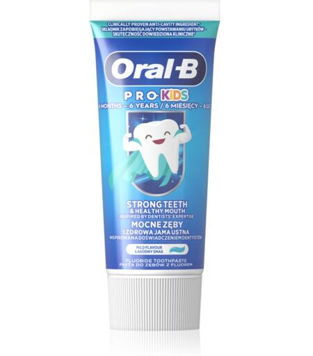Oral-B PRO Kids, 50 ml, Kids’ Toothpastes For Kids, The Oral-B PRO Kids toothpaste cleans children’s teeth perfectly and keeps them healthy and white. Characteristics: removes plaque prevents tooth decay tastes pleasant ideal for brushing first teeth maintains the proper pH in the mouth How to use: It is advisable to use the toothpaste at least twice a day, in the morning and evening, or after every meal. After use, rinse the mouth out thoroughly. ...