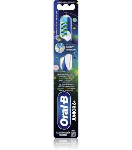 Oral-B Junior 6+, 1 pc, Kids’ Toothbrushes For Kids, The Oral-B Junior 6+ toothbrush effortlessly encourages hygienic habits in children. The cheerful design makes cleaning teeth fun. Characteristics: comfortable to hold in the hand takes gentle care of the gums a fun design for children cleans teeth gently and reliably How to use: Put toothpaste on the brush, moisten and clean the teeth and mouth. ...