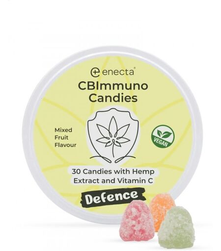 Features: 30 pcs one candy contains 6 mg hemp extract (CBG) and 6 mg vitamin C gluten free vegan flavour: Mixed fruits Ingredients: Sugar, Glucose syrup, Water, Apple Juice Concentrate (6 %) and Pulp (2 %), Hemp Extract, Vitamin C (Ascorbic acid), Gelling agent (pectin), Acidifier (Citric acid), Flavors, Colorants (E100, E160a), Elderberry Extract Nutrition per 100 g: Energy: 363 Kcal/1543 KJ Fat: 0,1 g Of wich saturates: 0,0 g Carbohydrates: 90,5 g Of which sugars: 81,1 g Proteins: 0,1 g Salt: 0,0 g Vitamin C: 300 mg (375 % RDA) Recommended use: 2 candies per day over a prolonged period of time, from the beginning of autumn to the end of winter Warning: Keep out of reach of small children, avoid during pregnancy! Products have undergone extensive laboratory analysis to ensure the absence of synthetic cannabinoids. We prioritize quality and safety in products to provide you with the best experience possible. NOTE: DO NOT DRIVE OR OPERATE MACHINERY WHILE USING THIS PRODUCT. Do not use if you are pregnant, nursing, or have any diagnosed or undiagnosed medical conditions. Ensure that the purchase or use of this product complies with all applicable laws and regulations in your jurisdiction. Warning: Do not expose to direct sunlight. Store in a dry place. This product complies with all applicable laws and regulations. It is intended solely for industrial, technical, and horticultural purposes. Not intended for direct consumption or smoking. The product may naturally lose weight over time. Sale to individuals under 18 years of age is prohibited. Keep out of reach of children and pets. At the time of sale (in-store / via shipping service / through another dispensing point), the seller will verify that the buyer is not under 18 years of age. ...