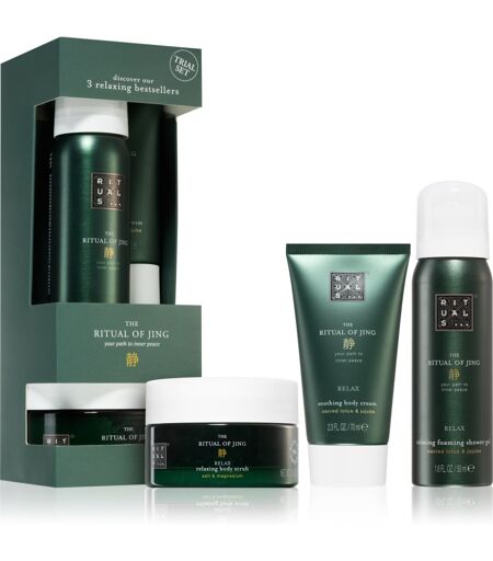 RITUALS The Ritual Of Jing, , Shower Mousse for Women, Everything for beautiful-looking skin all in one package. The RITUALS The Ritual Of Jing beauty gift set contains not one but several products to help you create or enrich your daily beauty routine and make you or your loved ones happy to receive it as a gift. The set contains: Body Scrub 125 g Body Cream 70 ml Shower Foam 50 ml Characteristics: leaves the skin soft and supple a set of cosmetic products for everyday use removes dead skin cells has softening effects a treat for any woman How to use: Use every product from the cosmetic set according to the instructions. ...