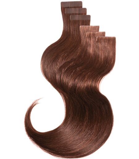 NEW: Easy Invisible Tape Extensions! Specially designed for clients with thin hair, these tape extensions offer comfort and a completely natural look. With virtually invisible application, they blend in almost seamlessly for a flawless look and feel. Each package contains a set of 6 tape extensions: 3 regular tapes and 3 hair-enriched tapes. Application technique: TapeHair type: Human hairAlmost invisible integrationAffordable extensions for thin hairCan be combined with other (tape) extensions The Easy Invisible Tape method is perfect for fine hair when a discreet hair extension is desired. The fusion of hair and tape creates an almost invisible finish. Easy Invisible Tapes are designed to blend in perfectly with the hair - with an invisible tape for natural integration and a standard tape. Opt for Easy Invisible Tape Extensions to achieve a subtle, flawless look with natural fullness. A system where normal tapes are attached under the Invisible Tape makes this new product affordable. The combination with other (tape) products gives you the flexibility you need to create great looks. Style your hair like real hair - Easy Invisible Tape Extensions can be curled, straightened and styled just like your own hair. Application Easy Invisible Tape Extensions (4-6 weeks): 1. remove the protective film from the tapes. 2. part the hair and separate a section of about 4 cm. Hold a normal tape underneath and place the natural hair on top. Press firmly on the natural hair so that enough hair adheres to the tape. 3. place an Easy Invisible Tape on the section and press firmly together. 4 If necessary, use a straightening iron to attach the tape more firmly. 5. do not wash the hair for 24 hours to ensure a perfect hold. Reusing the tapes Tape On Roll is required to reuse the Easy Invisible Tape extensions. To remove the old tape extensions from the natural hair, the non-chemical Silk Tape Remover can be used. If the Silk Tape Remover is used, it is important to wash the extensions and natural hair thoroughly before reapplying to ensure that all oils have been removed. ...