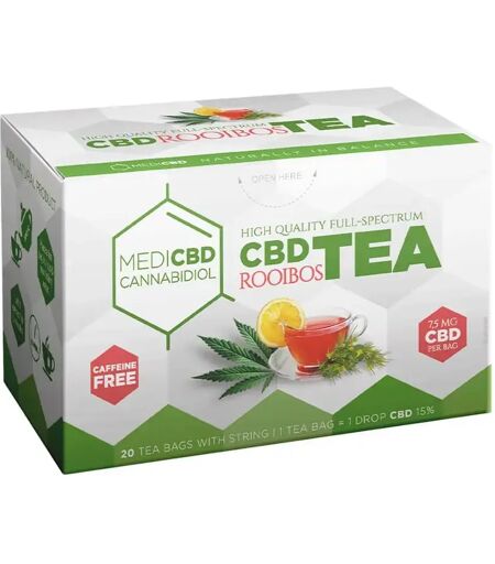 Description MediCBD – Rooibos Tea 7.5mg CBD (Box of 20 Tea Bags) Features: 100% Legal for Consumption in the European Union (EU) THC FREE (0 % THC) – No Narcotic Effects Made in EU Content: 20 Deluxe Teabags Contains 7,5 mg CBD per tea bag Products with their designation comply with European law. All offered products contain less than 0,2 % THC and all seeds we use are certified and are on the list of approved varieties for cultivation, harvesting and processing in the EU. Please note: Not for children. Keep out of reach of children. Do not use when pregnant or breastfeeding. This product is a food supplement and is not intended to diagnose, treat, cure, or prevent any disease. Upon sale (at the store / via a transport service / via another dispensing point), the seller will verify that the buyer is not under 18 years of age. ...