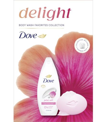 Dove Delight, , Cosmetic Sets for Women, Ho, ho, ho! Christmas is almost upon us and, just like every year, it’s worth starting your Christmas shopping early. This year, we’ve put together luxurious Christmas boxes just for you, full of our best-selling cosmetics and fragrances, which we’ll deliver to you in beautiful christmas gift wrap. You can choose from a wide variety of products and we’ll choose your box design ourselves since Christmas is mainly about nice surprises! The set contains: Dove Petal Soft Shower Gel 250 ml Dove Pink Cleansing Bar 90 g Dove Washing Sponge 1 pc Characteristics: washes the skin and gets rid of dirt leaves skin velvety soft and smooth moisturises intensely the non-greasy texture ensures gentle cleaning has a soothing effect gives a rich lather a treat for any woman amazing as a gift limited edition How to use: Apply when showering or taking a bath. Apply to the skin all over the body, then rinse with warm water. Suitable for everyday use. ...