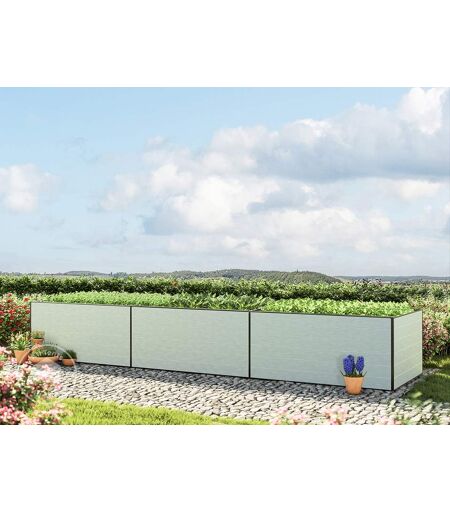 490 x 150 x 77 cm Raised garden bed, Aluminium anodised: Looking to create the perfect growing conditions for cucumbers, kohlrabi, and radishes—without the backache of traditional gardening? The [product_line] raised garden bed from the trusted brand GFP in [colour] is the ideal solution. This modern, rectangular raised garden bed has a height of [product_height] and a weight of [product_weight], making it both durable and maintenance-free. Crafted from aluminium anodised planks (approx. 22 mm thick) and ‘Designed in Austria’, it provides exceptional stability while the practical plug-in system allows for quick and effortless assembly. To suit different garden spaces, the raised bed is available in four widths: 77 cm, 99 cm, 119 cm, and 150 cm. Plus, enjoy peace of mind with a 15-year guarantee on the aluminium frame. ...