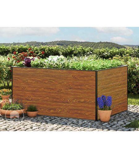 150 x 119 x 77 cm Raised garden bed, Wood-finish: Looking to replace your traditional raised bed with a more ergonomic and durable alternative? The [product_line] raised garden bed from the quality brand GFP in [colour] offers the perfect solution. With dimensions of 1,19x1,5m, this rectangular raised garden bed is built with a robust aluminium anodised construction—‘Designed in Austria’—for exceptional stability and longevity. The practical plug-in system ensures effortless assembly, while its low-maintenance design makes gardening even more enjoyable. At a height of [product_height] and weighing [product_weight], this raised bed eliminates the need for additional moisture protection inside, ensuring hassle-free use. Plus, you’ll benefit from a 15-year guarantee on the aluminium frame. ...