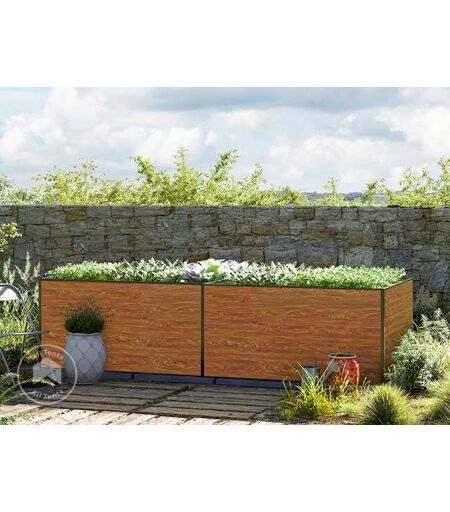 297 x 150 x 77 cm Raised garden bed, Wood-finish: Looking to create the perfect growing conditions for cucumbers, kohlrabi, and radishes—without the backache of traditional gardening? The [product_line] raised garden bed from the trusted brand GFP in [colour] is the ideal solution. This modern, rectangular raised garden bed has a height of [product_height] and a weight of [product_weight], making it both durable and maintenance-free. Crafted from aluminium anodised planks (approx. 22 mm thick) and ‘Designed in Austria’, it provides exceptional stability while the practical plug-in system allows for quick and effortless assembly. To suit different garden spaces, the raised bed is available in four widths: 77 cm, 99 cm, 119 cm, and 150 cm. Plus, enjoy peace of mind with a 15-year guarantee on the aluminium frame. ...