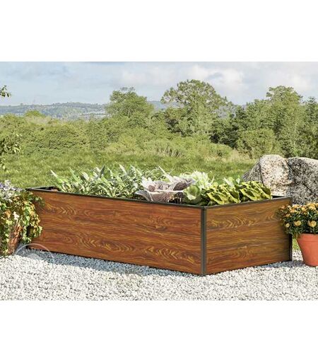150 x 77 x 39 cm Raised garden bed, Wood-finish: Love gardening but need to give your back a break? The [product_line] raised garden bed from the trusted brand GFP in [colour], with dimensions 0,77x1,5m, offers a practical and ergonomic solution. Designed to reduce strain and improve accessibility, it allows for easy filling and effortless care of your vegetables and herbs. Crafted with aluminium anodised planks (approx. 22 mm thick) – ‘Designed in Austria’ – this durable and stable structure ensures long-lasting performance. The intuitive plug-in system allows for quick and hassle-free assembly. With a height of approximately [product_height] and a weight of [product_weight], this low-maintenance, modern raised garden bed requires no additional moisture protection. Plus, enjoy peace of mind with a 15-year guarantee on the aluminium frame. ...