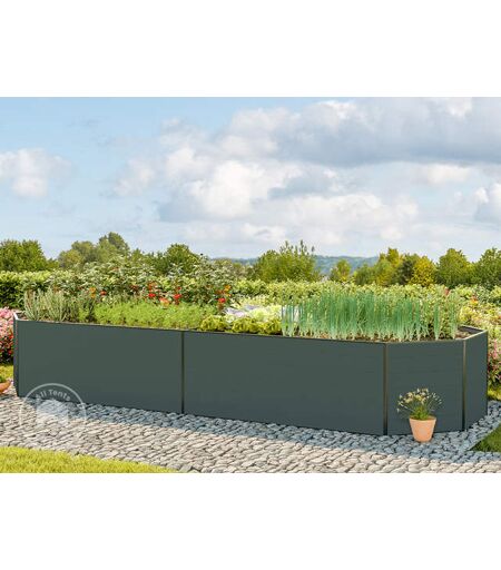 299 x 119 x 77 cm Raised garden bed, Anthracite grey: Love growing your own vegetables but tired of bending down? The [product_line] raised garden bed from the trusted brand GFP in [colour], with dimensions 1,19x2,99m, offers the perfect solution. Designed for comfort and convenience, it allows you to tend to your plants without straining your back. Crafted from aluminium anodised planks (approx. 22 mm thick) and ‘Designed in Austria’, this durable and stable raised garden bed ensures long-lasting performance. The intuitive plug-in system makes assembly quick and straightforward. With a height of [product_height] and a weight of [product_weight], this modern, maintenance-free raised garden bed suits any garden style. Choose from a range of shapes to fit your space, including U-shaped, square, cross-shaped, octagonal, dumbbell-shaped, oval, or sloped at the front. A further advantage: no additional protective film is needed to guard against moisture. Plus, enjoy peace of mind with a 15-year guarantee on the aluminium frame. ...