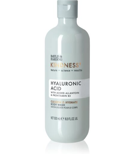 Baylis & Harding Kindness+ Hyaluronic Acid, 500 ml, Shower Gels for Women, Do you want to transform a simple shower into an exceptional experience imbued with a pleasant fragrance? Baylis & Harding Kindness+ Hyaluronic Acid shower gel will help you do so. While your senses are being pampered by its irresistible scent, its foaming texture will effectively rid your skin of all impurities without drying it out unnecessarily. So, you will be leaving your bath or shower with perfectly clean and velvety smooth skin that has a wonderful aroma. This, too, makes the shower gel a crucial feature of your everyday hygiene routine, turning it into a pleasant ritual you will look forward to. Characteristics: washes the skin and gets rid of dirt moisturises intensely softens and improves the skin’s elasticity makes skin feel comfortable nourishes and cares for the skin Ingredients: vegan product contains a minimum of 98% ingredients of natural origin hyaluronic acid – binds large quantities of water and hydrates intensively vitamin B – has hydrating and soothing effects, relieves irritation, supports the function of the protective skin barrier, helps regulate sebum production How to use: Apply when showering or taking a bath. Apply to the skin all over the body, then rinse with warm water. Suitable for everyday use. ...