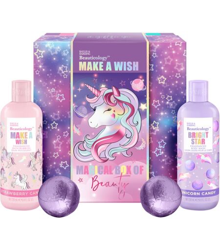 Baylis & Harding Beauticology Cosmic, , Cosmetic Sets for Women, Everything for beautiful-looking skin all in one package. The Baylis & Harding Beauticology Cosmic beauty gift set contains not one but several products to help you create or enrich your daily beauty routine and make you or your loved ones happy to receive it as a gift. The set contains: Unicorn Candy Shower Gel 250 ml Strawberry Candy Bath Foam 250 ml Unicorn Candy Bath Bomb 120 g Strawberry Candy Bath Bomb 120 g Characteristics: a set of cosmetic products for everyday use has a pleasant fragrance makes skin feel comfortable leaves skin velvety soft and smooth leaves a refreshing feeling has softening effects a treat for any woman amazing as a gift How to use: Use every product from the cosmetic set according to the instructions. ...