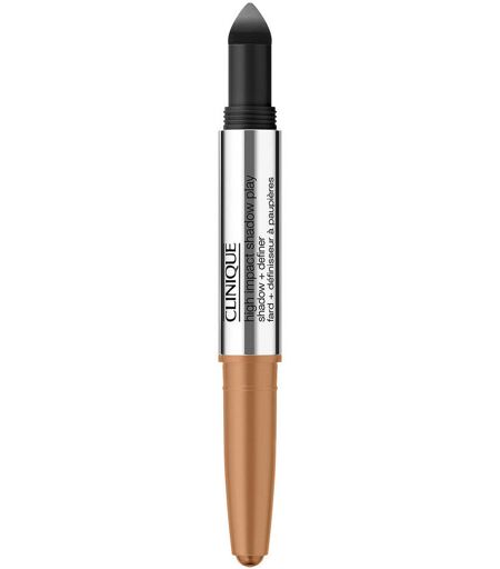 An eyeshadow pencil with two ends for an instant eye look. In 10 perfectly coordinated color pairs. Finishes: - Pencil - Satin - Powder - Softly matt to softly shimmering One stick. Two tricks. Limitless looks. Each dual-ended stick contains a creamy eyeshadow and a soft powder in perfectly coordinated shades, making it easy to create complete eye looks on the go. - Two versatile shades and formulas in a single, flawless tool to create an eye look anytime, anywhere. - On one side is a creamy eyeshadow pencil that applies full color in one swipe. On the other side, a velvety powder with a precise sponge applicator allows you to effortlessly define and add dimension. - Available in 10 perfectly coordinated color pairs. From soft neutrals to bold blues, there are shades to suit all skin tones and moods. - Delivers richly pigmented color that lasts all day. Formulas are crease-free and resistant to sweat and humidity. The Clinique promise of safety for the eyes: High Impact Shadow Play™ delivers powerful color that's easy on the eyes. - Ophthalmologist tested - Safe for sensitive eyes - Safe for contact lens wearers Application: There are endless ways to play with this multitasking duo. You can wear each shade individually or combine them together to create a complete look. To use the creamy pencil, pull off the cap and twist the barrel slightly upwards to reveal the tip of the pencil. Apply the pencil as desired to the eyelid, crease, upper and lower lash line. To close, slide the cap onto the pencil until you hear a distinct click. To use the powder definer, twist off the cap. Use the precision sponge applicator to apply the powder shadow as desired to the eyes, including the lid, upper lash line, crease and under the lower lash line. To load the sponge with powder shadow, place it back into the cap. Screw the cap back on tightly to close. ...