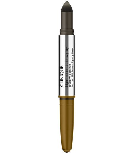 An eyeshadow pencil with two ends for an instant eye look. In 10 perfectly coordinated color pairs. Finishes: - Pencil - Satin - Powder - Softly matt to softly shimmering One stick. Two tricks. Limitless looks. Each dual-ended stick contains a creamy eyeshadow and a soft powder in perfectly coordinated shades, making it easy to create complete eye looks on the go. - Two versatile shades and formulas in a single, flawless tool to create an eye look anytime, anywhere. - On one side is a creamy eyeshadow pencil that applies full color in one swipe. On the other side, a velvety powder with a precise sponge applicator allows you to effortlessly define and add dimension. - Available in 10 perfectly coordinated color pairs. From soft neutrals to bold blues, there are shades to suit all skin tones and moods. - Delivers richly pigmented color that lasts all day. Formulas are crease-free and resistant to sweat and humidity. The Clinique promise of safety for the eyes: High Impact Shadow Play™ delivers powerful color that's easy on the eyes. - Ophthalmologist tested - Safe for sensitive eyes - Safe for contact lens wearers Application: There are endless ways to play with this multitasking duo. You can wear each shade individually or combine them together to create a complete look. To use the creamy pencil, pull off the cap and twist the barrel slightly upwards to reveal the tip of the pencil. Apply the pencil as desired to the eyelid, crease, upper and lower lash line. To close, slide the cap onto the pencil until you hear a distinct click. To use the powder definer, twist off the cap. Use the precision sponge applicator to apply the powder shadow as desired to the eyes, including the lid, upper lash line, crease and under the lower lash line. To load the sponge with powder shadow, place it back into the cap. Screw the cap back on tightly to close. ...