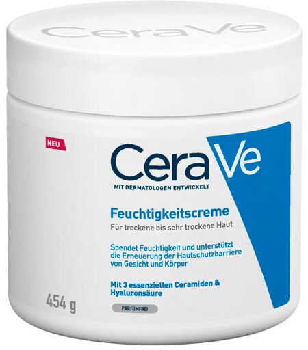 This rich cream with a soft powdery finish moisturizes the skin for a whole day and helps restore the skin's protective barrier. CeraVe moisturizer for dry to very dry skin contains three essential ceramides and hyaluronic acid. Application: Apply generously as often as desired. CeraVe Moisturizing Cream can be used for the whole body and face. Suitable for adults and children. CeraVe: Developed with dermatologists In 2005, leading dermatologists from the USA researched a new, groundbreaking skin care product that would strengthen the skin's protective barrier in an innovative way. Their aspiration was to combine dermatological efficacy with maximum ease of use - for a silky, soft skin feel. This is how CeraVe was born. CeraVe Technology Multivesicular Emulsion Technology (MVE): a revolutionary care system that gradually releases valuable moisturizing ingredients, layer by layer, to provide the skin with long-term hydration. How CeraVe was created With the combination of ceramides and the patented active ingredient release MVE, CeraVe launched the three main products: Moisturizing Cream, Moisturizing Lotion and Moisturizing Cleansing Lotion. CeraVe today Currently, CeraVe offers a comprehensive range of face and body care products. CeraVe, that is high quality skin care for all. Developed with the expertise of dermatologists. ...